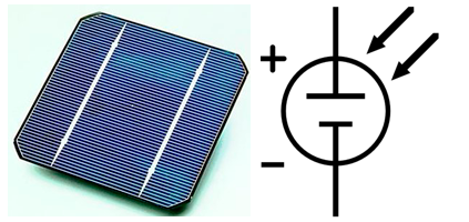 A solar cell, or photovoltaic cell, is an electrical device that converts the energy of light directly into electricity by the photovoltaic effect, which is a physical and chemical phenomenon. It is a form of photoelectric cell, defined as a device whose electrical characteristics, such as current, voltage, or resistance, vary when exposed to light. Individual solar cell devices are often the electrical building blocks of photovoltaic modules, known colloquially as solar panels. The common single junction silicon solar cell can produce a maximum open-circuit voltage of approximately 0.5 to 0.6 volts.