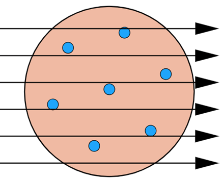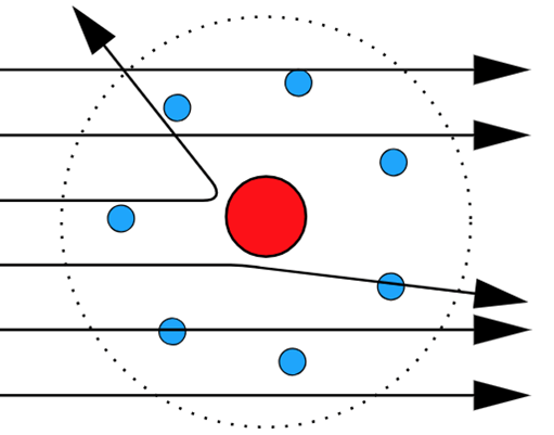 If Thompson’s view of the atom was correct, then positively charged alpha particles would be expected to just pass straight through the atom, as shown below.